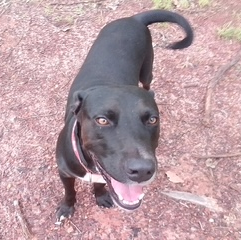 She is believed to be wearing black shorts, black shirt and has a small black dog accompanying her.